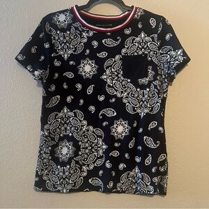Tommy Hilfiger Blue Paisley Print Shirt Short Sleeves size M
