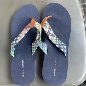 Tommy Hilfiger Blue Plaid Fabric Flip Flop Sandals Size 11M NWOT. In Excellent Condition