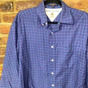 Tommy Hilfiger Blue Plaid Long Sleeve Button Down Shirt Men's Size 15.5 34-35