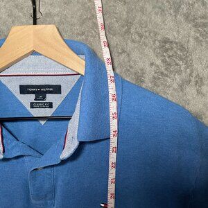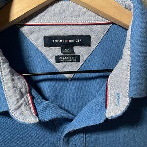 Tommy Hilfiger Blue Polo Shirt Mens Large 100% Cotton Collared Flag Logo