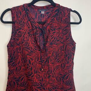 Tommy Hilfiger Blue Red Floral Print Sleeveless Blouse Sz Small