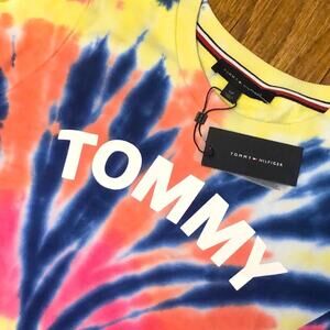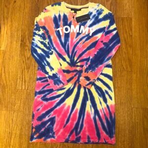 • Other information: Crew neckline. Long sleeves. Longer length dress. Simple pullover dress. “Tommy” in white lettering with tie dye over the rest of the dress.
