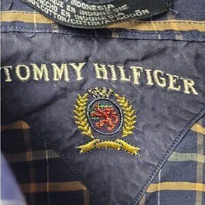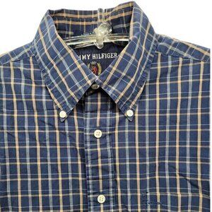 Tommy Hilfiger Blue Tan Plaid Long Sleeve Button Up Vintage Men's Shirt Top