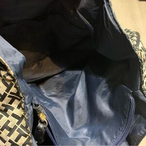 Gold tone Tommy Hilfiger Nameplate to the front of the bag.