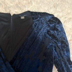 Tommy Hilfiger Blue Velvet Dress Sheer Sleeves Faux Wrap Event Holiday SZ 4