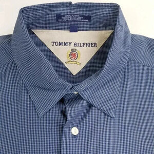 Tommy Hilfiger Blue White Check Logo Tag XL Shirt