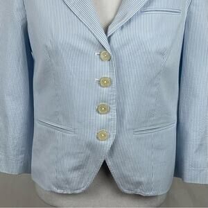 Tommy Hilfiger Blue White Pinstripe Cotton Prep Academia Blazer NWOT Size L