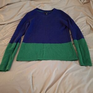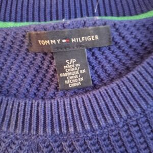Stylish and comfortable, this blue and green women's sweater by Tom Hilfiger is perfect for any occasion. Enjoy the soft fabric and vibrant colors. Size S/P. pit to pit measures 17 inches. Length 23 inches.
