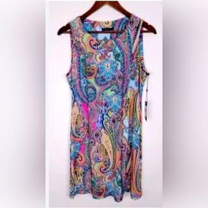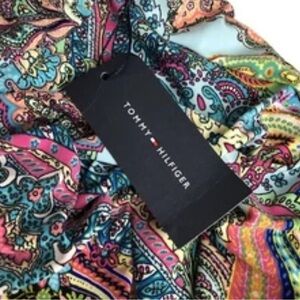 This sleeveless tank top by Tommy Hilfiger features a striking graphic design in shades of blue and purple. The lightweight fabric and rounded neckline make it a comfortable and stylish choice for any casual occasion.