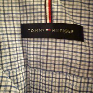 Men’s size medium Tommy Hilfiger blue and white wrinkle free stretch button down; Excellent condition.