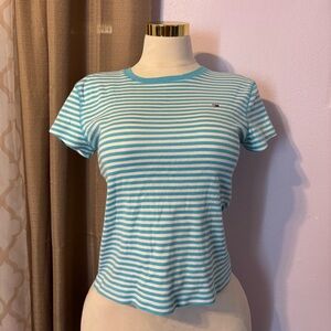 Tommy Hilfiger Blue and White Striped Short Sleeve Tee