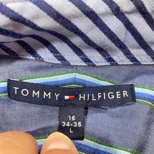 Tommy Hilfiger Blue/Green Striped L/S Button Front Casual Shirt Size 16 (34-35)