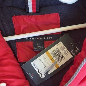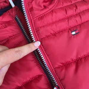 Tommy Hilfiger Boys Hooded Puffer jacket 3 Toddler Red Blue Winter Fall Flawed