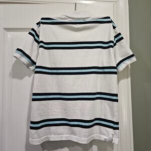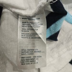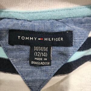 Tommy Hilfiger Boy's Medium (12/14) White & Blue Striped Short Sleeve Polo