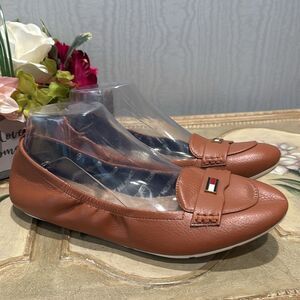 Tommy Hilfiger British Tan Faux Leather Flats Sz 8.5 Near New