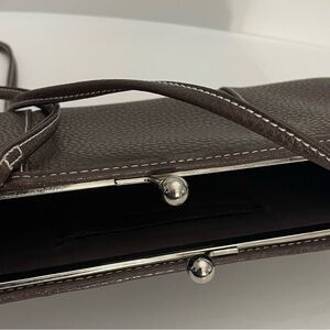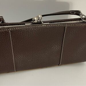 Tommy Hilfiger Brown Leather Clutch Crossbody Bag with Detachable Strap