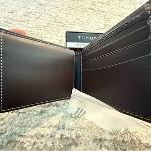 Elegant brown leather wallet by Tommy Hilfiger. Features RFID protection. Stylish and functional.