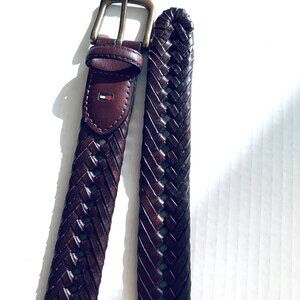 Tommy Hilfiger Brown Leather Woven Belt SZ 34