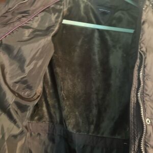 Stylish brown puffer jacket. Features a cozy design. Perfect for cold weather.