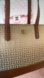 Chic tote with a classic brown and cream pattern. Perfect for everyday use. Features sturdy handles and signature logo.