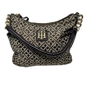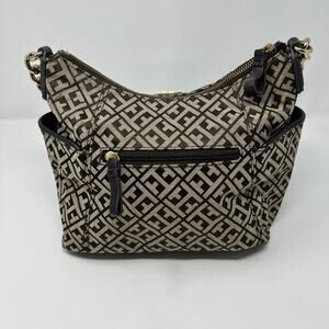 Tommy Hilfiger Brown and Tan Monogram Print Purse Shoulder Bag Gold Chain