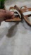 Chic sandals with a stylish design. Features brown and white straps. Perfect for casual outings.