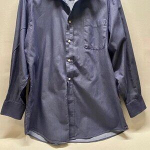 This men's shirt is in excellent pre-owned condition with no holes or stains and minimal to no signs of wear. Please see all photos as this is the exact garment you will receive. Measurements taken with item laying flat- armhole to armhole is 22.5", length from high point of shoulder to bottom hem is 31". Cotton blended fabric, machine wash cold.