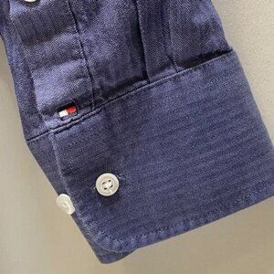 Tommy Hilfiger Long Sleeve Button Down Men's Large Steel Blue Tonal Stripe EUC