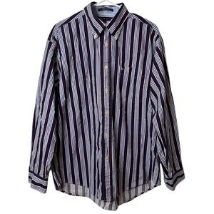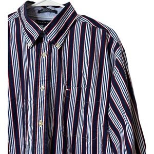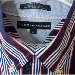 Tommy Hilfiger Button Down Red White Blue Striped Dress Shirt Men's Large Preppy