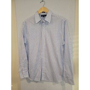 Tommy Hilfiger Button Down Shirt Mens Blue/White Stripes Long Sleeve Classic 16