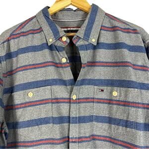 Tommy Hilfiger Button Down Shirt Mens XL Gray Blue Striped 100% Cotton Preppy