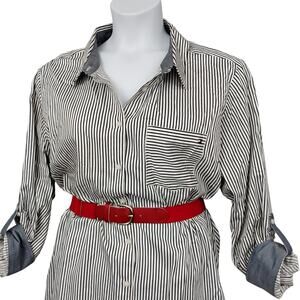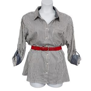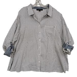 Tommy Hilfiger Button Down Shirt Size 2X Pinstriped Black and White Long Sleeve