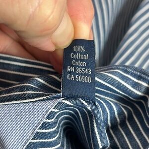 Tommy Hilfiger Button Front Shirt Men's Size 16.5 Blue & White Striped Cotton