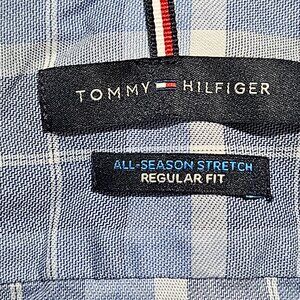 This versatile Tommy Hilfiger shirt features a classic plaid pattern with all-season stretch fabric, offering comfort and style for professional and casual settings.