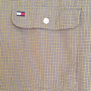 Tommy Hilfiger Button Up Men's Shirt Long Sleeve Olive Green 100% Cotton VTG XL
