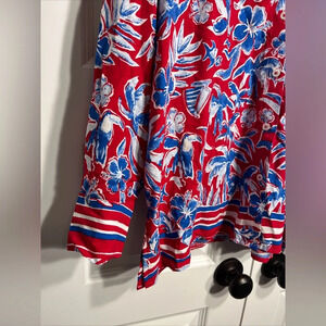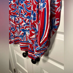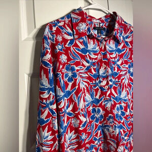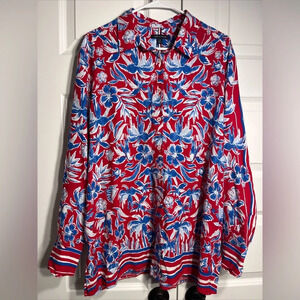 Tommy Hilfiger Button Up Shirt Mens L Blue Red Hawaiian Floral Long Sleeve NWT