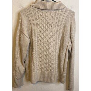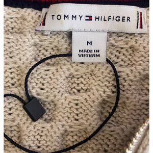 Tommy Hilfiger Cable Knit Cropped Fisherman Sweater Zip Front Turtleneck MEDIUM
