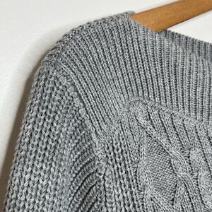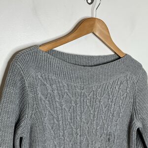 Tommy Hilfiger Cable Knit Sweater Gray Womens Small Boatneck Cotton Preppy