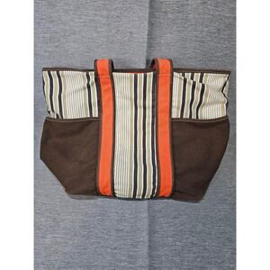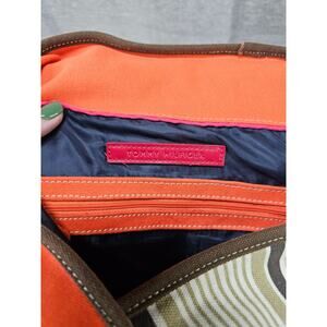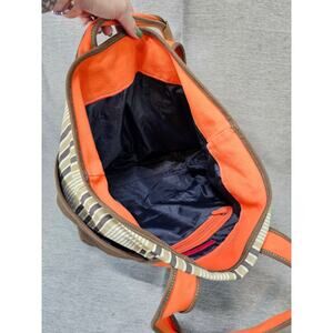 Tommy Hilfiger Canvas Square Shopper Tote Bag Orange Brown Stripe