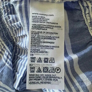 TH Lightweight, oversized, 100% Cotton, blue and white striped summer top, with pendulum waist, sleeveless and drawstring collar in EXCELLENT pre-loved condition! Freshly washed and ready to wear! Perfect for a HOT summer day! Size: XL