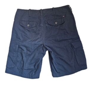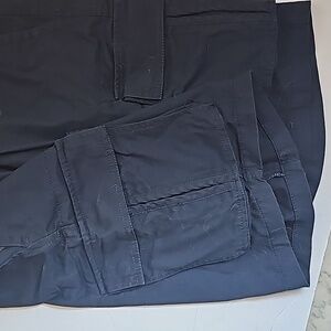 Two side cargo pockets. two back votton pockets, two front pockets.