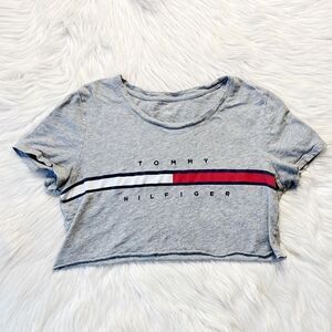 Tommy Hilfiger Casual Raw Edge Crop Top Grey Size Medium