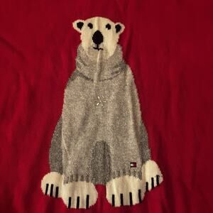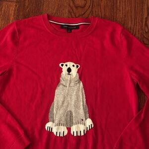 Tommy Hilfiger Christmas Holiday Sweater Snowflake Polar Bear Red Womens Medium