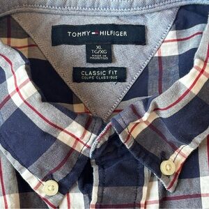 Tommy Hilfiger Classic Fit Buttondown Shirt Blue Plaid Check Men’s XLT