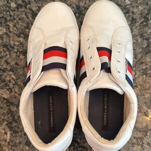 Tommy Hilfiger Classic White Sneakers with Red and Blue Stripes 8M