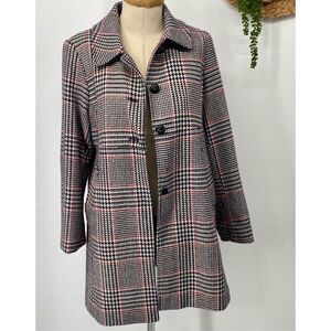 Tommy Hilfiger Classics 12 Wool Blend Houndtooth Plaid Coat Navy Red Cream Pocke