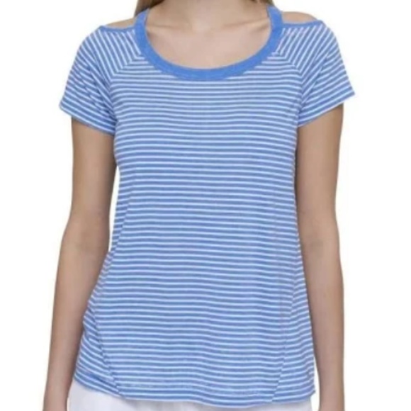 Tommy Hilfiger cold shoulder tunic-type tee, size medium, cotton/poly blend, very soft, slightly faded look as designec, NWT.