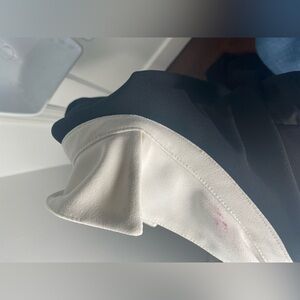 Experience the perfect blend of style and comfort with the Tommy Hilfiger black jumpsuit. This chic piece features a wide-leg design and short sleeves, offering a modern and versatile look. Ideal for both casual outings and formal events, its sleek silhouette ensures you stand out effortlessly. This jumpsuit is missing the belt. Use your own or don’t wear one at all. There is a marking on the underneath side of collar. It is not shown at all when wore. Could possibly come out when cleaned. Imported