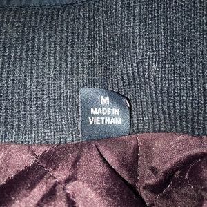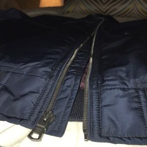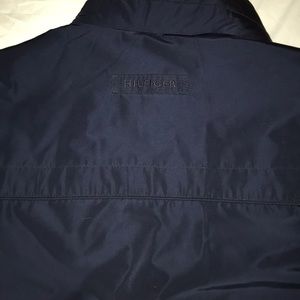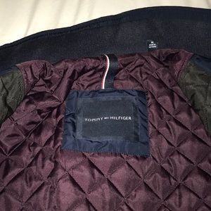 This Brand NEW, Navy / Water-resistant Collared Bomber Jacket will keep you warm and stylish in the cold months. It is equipped with a deep quilted material and lined with designer stitching of labels and logos of the TH brand.