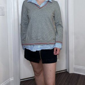 Tommy Hilfiger Collared Long-Sleeve Layered Sweater Top - Light Blue/Grey - L